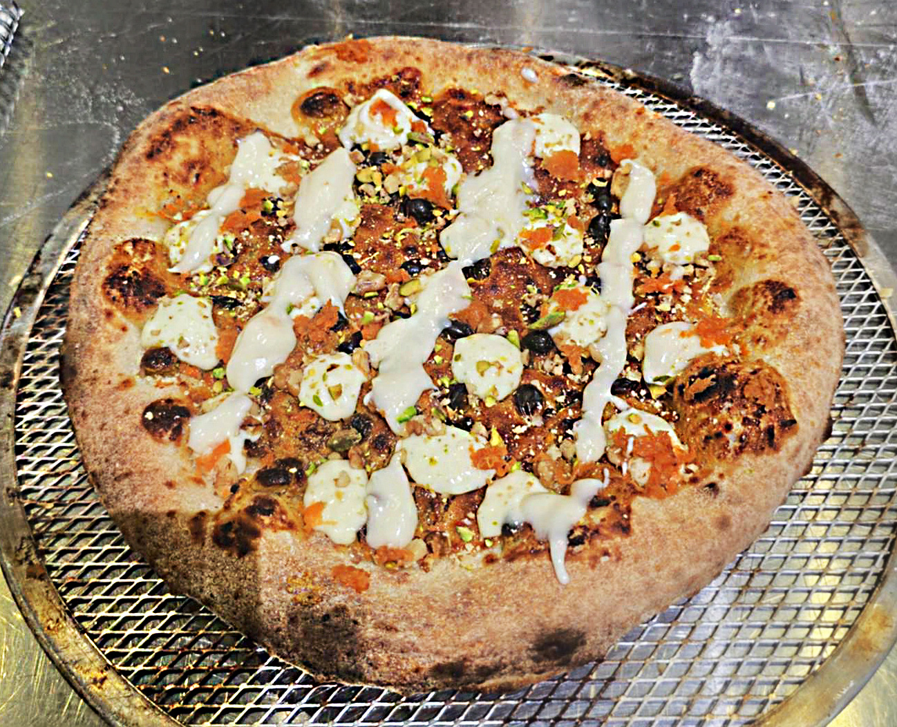 “I used a fermented dough ball, added carrot cake batter, golden raisins and shredded carrots, then cooked it at 620 degrees for 4-5 minutes,” Dempsey said. “After that, I added dollops of New York-style cheesecake batter, crushed walnuts and pistachios, a drizzle of warmed cream cheese frosting, and lemon zest.”