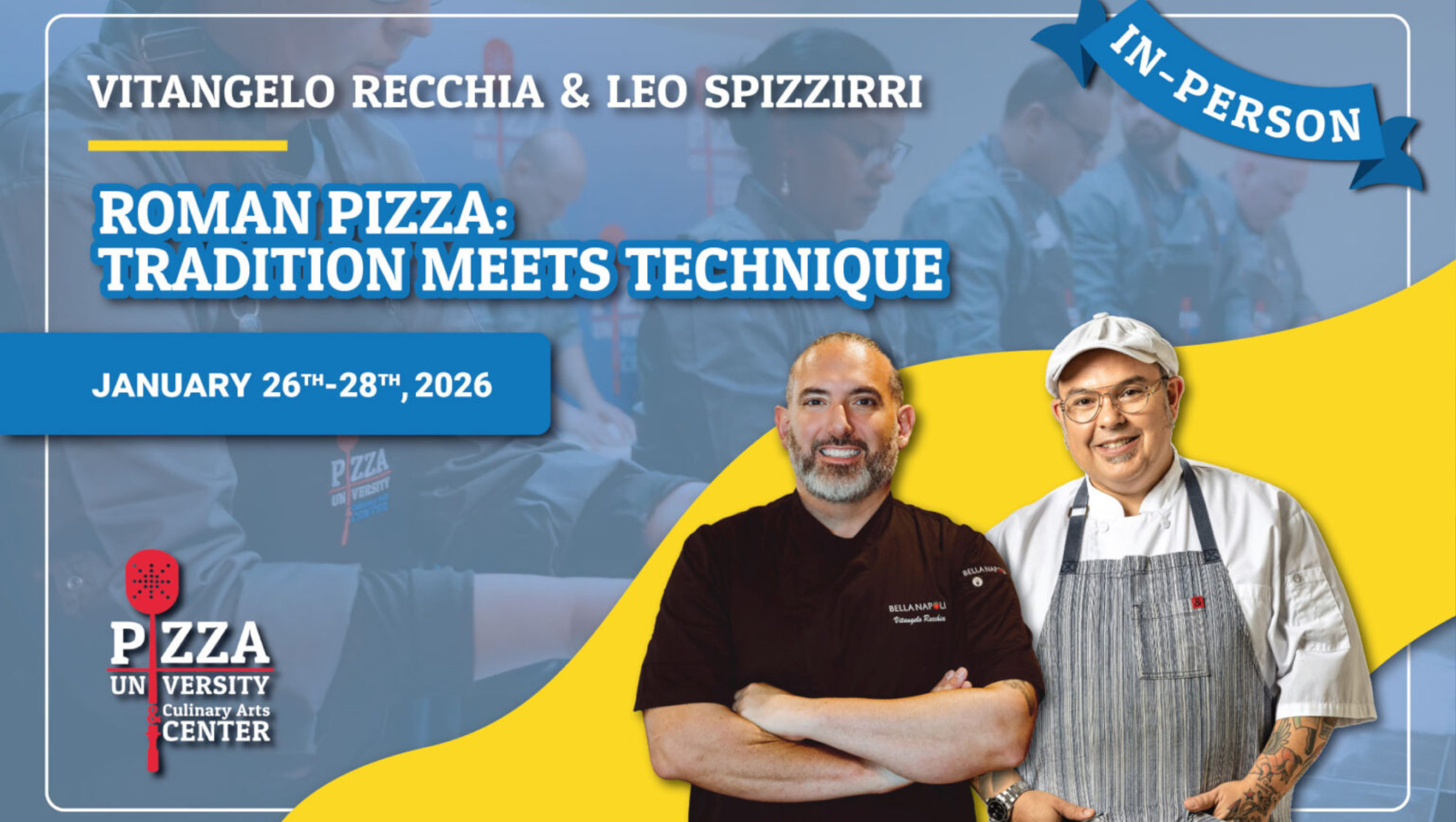 Roman pizza isn’t a passing trend. It’s reshaping how serious operators approach dough, fermentation, efficiency, and menu planning. That’s why USPT Culinary Coach and Master Instructor Chef Vitangelo Recchia of Bella Napoli Pizzeria & Restaurant is teaming up with Pizza University Director of Education Chef Leo Spizzirri for a Roman Style Masterclass at the Pizza University & Culinary Arts Center, January 26-28 in Beltsville, MD. Together, they offer operators far more than a new pizza format — they offer a smarter way to think about the craft.